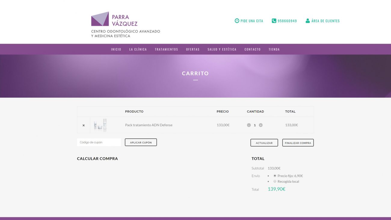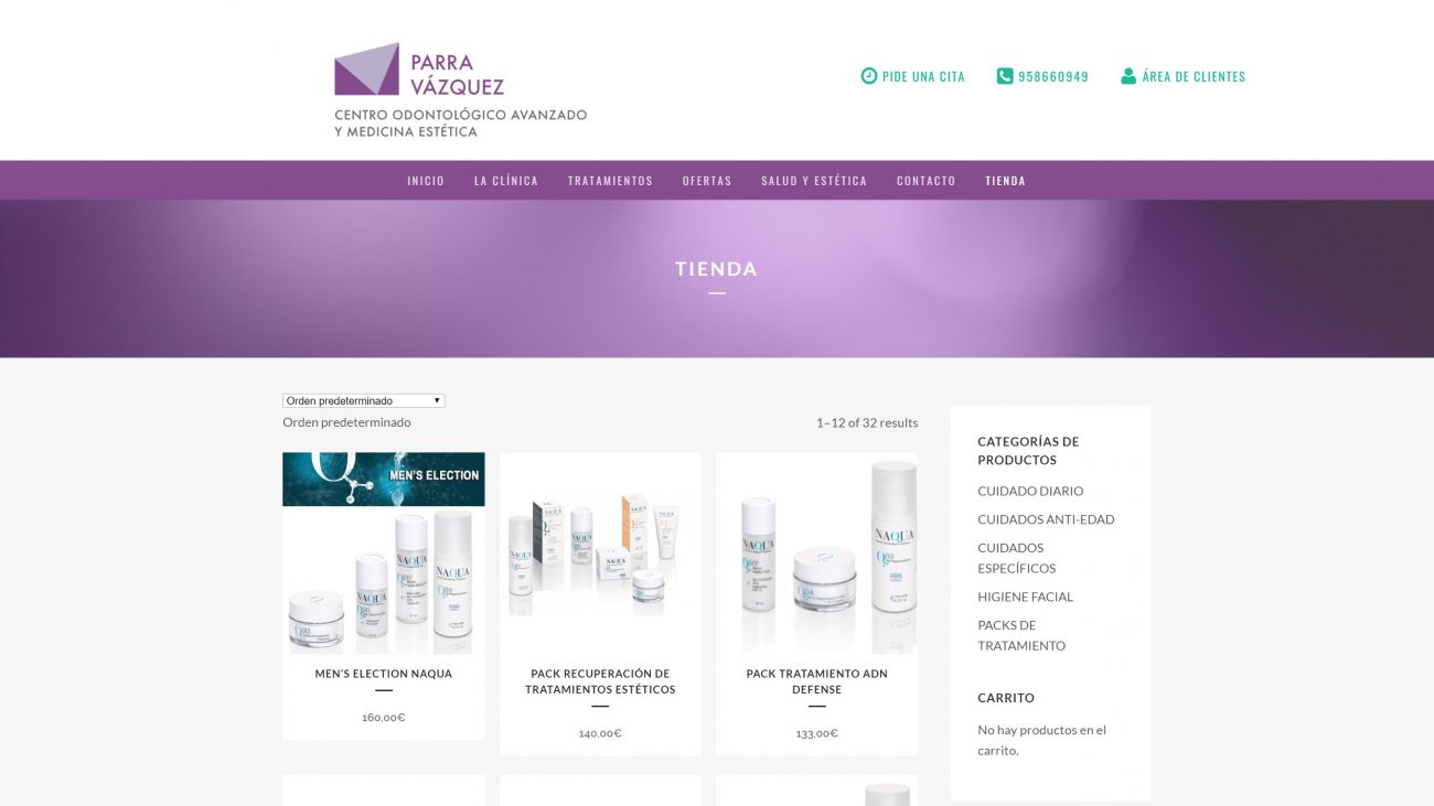 Náni es la gerente de Clínica parra vázquez. Contactó conmigo por que quería poner una tienda online en su página web que ya tienen montada. Pues me pues manos a la obra y tienda montada! También hemos contratado un mantenimiento de seguridad para su web, donde se le realizan copias de seguridad y se le mantiene su web completamente actualizada. Espero que le saquen mucho provecho y les reporten beneficios.