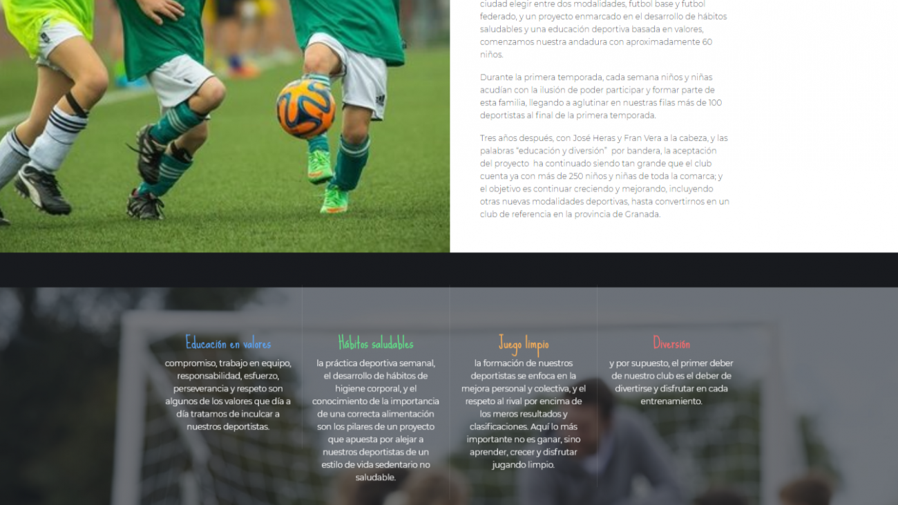 El club deportivo Guadix Atlético  es un club deportivo para niños y adolescentes, donde los valores del respeto y juego limpio se llevan a rajatabla. Su gerente Jose se puso en contacto conmigo para trabajar una web donde la gente se pueda registrar y darse de alta para ellos poder automatizar un poco el proceso de automatización de la empresa. Hemos conseguido el objetivo, además de tener la empresa más automatizada, tenemos una web intuitiva y moderna donde poder seguir creciendo como los grandes profesionales que son.