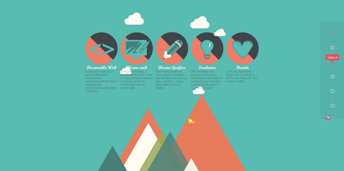 Lo primero que hace un diseñador es su página ¿no? yo tengo dos, la primera es la página principal que has visto , realizada con tecnología HTML5 y Css3 integra. El diseño es un diseño minimista Flat Desing. Por otro lado me acabo de realizar esta web donde estas ahora, un diseño limpio y cuidado para que puedas ver mis trabajos web y además mucho mas fácil para mi a la hora de actualizar. ¡Espero que te guste!